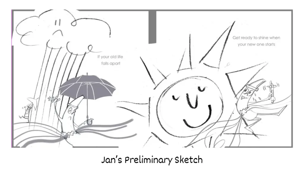 I thought it might be fun to take you behind the scenes and show you a little of what that journey looked like. From my rough, hand-drawn sketches (yes, I drew a few!) to Jan’s early storyboards, and finally to the gorgeous full-color illustrations, this book went through so many stages. Each one added something special.